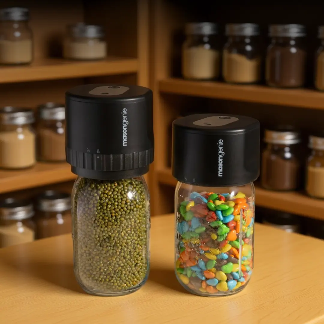 Storing rice, flour, nuts, and grains is a breeze with Mason Genie's perfect vacuum seal. Your dry goods stay fresh for months or even years without spoilage. Since there's no air in the jar, you'll never worry about pantry pests or staleness again. After your first seal, you'll wonder how you ever stored food any other way.
