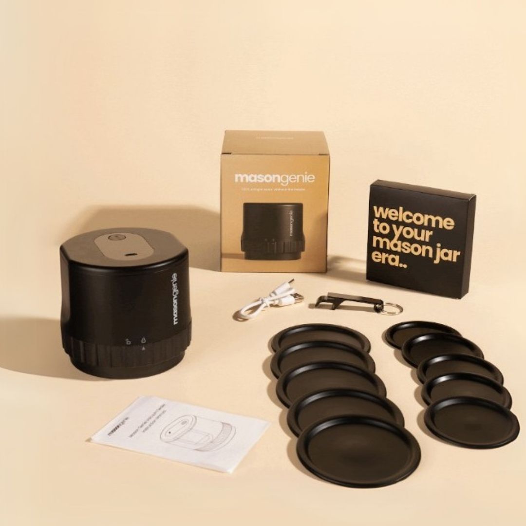 The Mason Genie™ sucks out all the air from your mason jar, delivering a perfect, airtight seal.