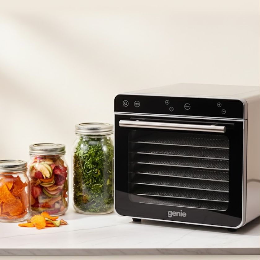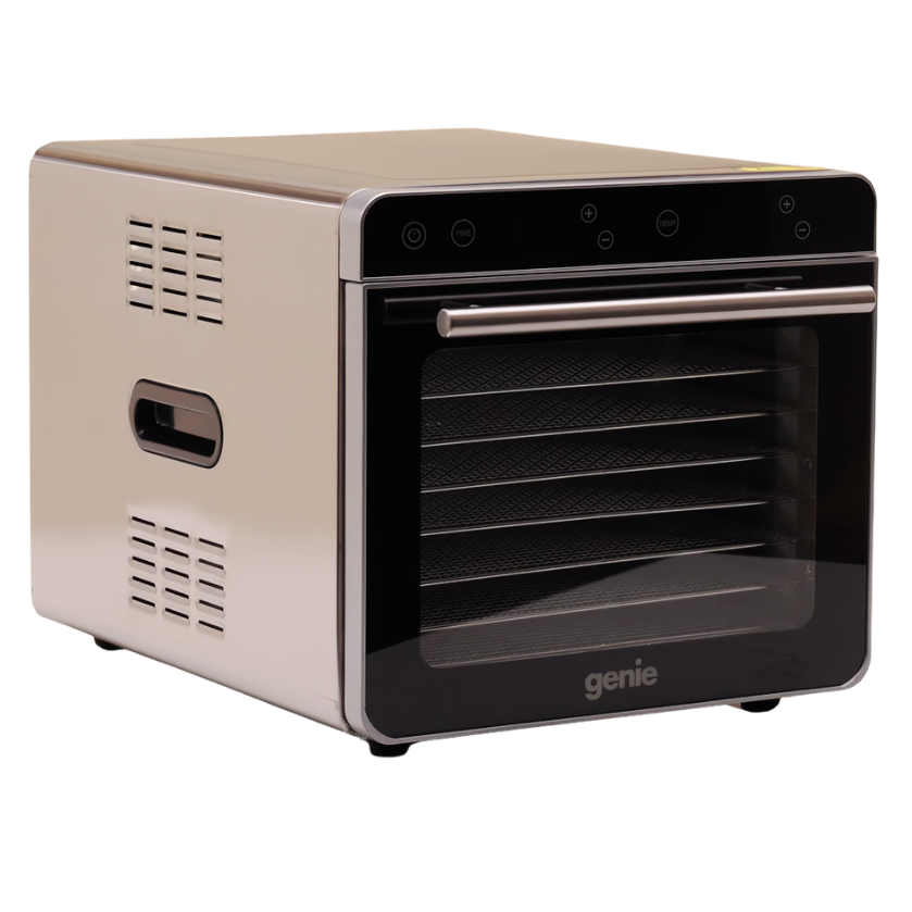 The Genie Dehydrator is built from 100% stainless steel for durability you can feel every time you use it. No flimsy plastic, no warping, no shortcuts. Just a solid, reliable tool that delivers consistent drying results, batch after batch.